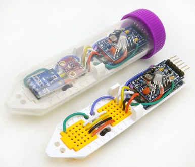 We often have our students choose PIR driven logging on their final projects where, for example, monitoring the movement of their pets at night is a common theme. Simply enable the PIRtriggersReading in the basecode to change from RTC to PIR driven logging. The centrifuge tube housing reduces the IR range by about 35% but you should still get several meters of response. Haven’t had any running in this mode long enough for an outdoor lifespan trial but I’d expect at least 2 months when combined with a low power sensor like the BH1750. Also be sure to lock everything down with drops of hot glue if using the EDU build to protect against vibration.