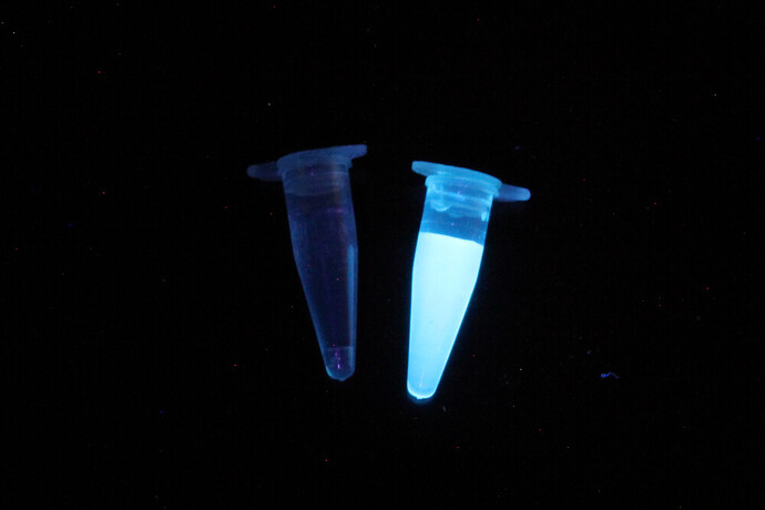 The protocol to prepare reagents and PCR using this kit is here (link) but in brief: grow E. coli containing the pTI vector (an open access vector we made in Reclone for protein expression (link)) containing a polymerase named OpenVent, fused to a red fluorescent protein (so you can see red fluor or pink color with naked eye, as a proxy for polymerase expression). The expression of these genes is normally controlled by IPTG (an expensive analogue of lactose metabolites), but autoinduction media do the job here since cells first consume glucose and then lactose, these metabolites activate gene expression. You incubate the plates at 37 overnight. We are testing bed blankets for this but any device that reaches 37C would do the job (e.g. kombucha fermenter mats, or close to an oven in winter). When the plates become pink, it means the enzyme and red fluorescent protein has expressed and you are ready to collect cells. Next, you have to collect the cells with a razor blade or microscope slide and collect them in an eppendorf. Here, you use Nico’s tupperfuge to precipitate the cells and wash any agar and debris carried during the harvesting step. Next, an open colorimeter is used to calculate the range of working bacterial densities. We are working on a method to measure red fluorescence with the transilluminator (same used below for the gel) and compare notes with OD-based measurements (sometimes bacteria growth does not equal good protein production, the two processes could be decoupled). After running the gel on electrophoretic chambers, it is visualized in a blue transilluminator.