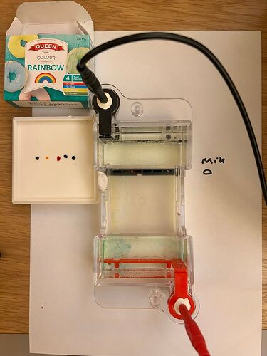 - The separation of the amplified DNA by electrophoresis in a low cost chamber and open source power supply. HELP NEEDED: the power supply works very well but the gel chamber has been a pain. After trying different acrylic cases, the binding of acrylic was very laborious, trying to waterproof the 3D printed version was very difficulty and we ended up buying a cheap one on Ali and replacing the platinum wire. Thoughts very welcome.