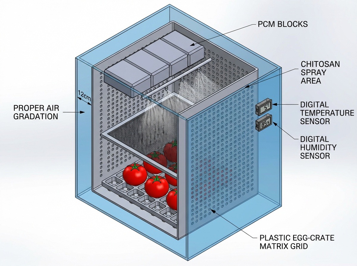 Here, ambient temperatures often reach around 34 °C with high humidity, and small farmers have very limited access to cold storage.